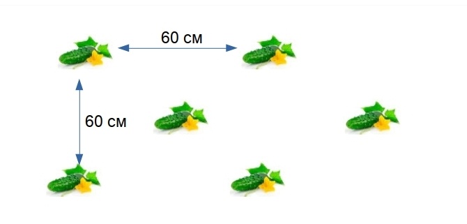 Шахова схема вважається «ледачою», так як огірки садять в довільному порядку на прямокутному або квадратному ділянці відкритого грунту таким чином, щоб рослини перебували на відстані 60-70 см одна від одної.